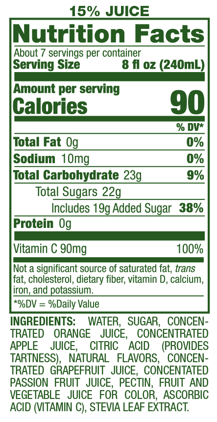 Orange, Grapefruit, Apple and Passionfruit – we go all-in for a drink you’ll enjoy all day long.